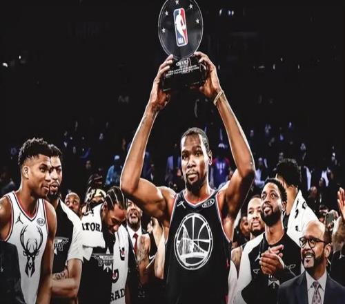 跟威少一样,杜兰特也是两次拿到全明星赛的MVP,一次是2018—19赛季,一次是2011—12赛季。