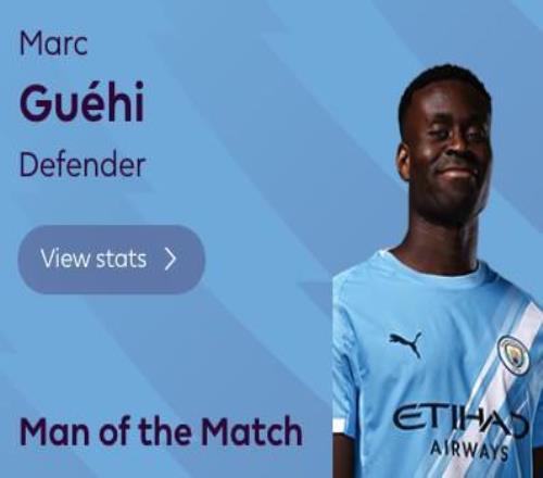 英超第23轮,曼城主场2-0击败狼队,此役上演曼城生涯首秀的后卫格伊当选全场最佳球员。